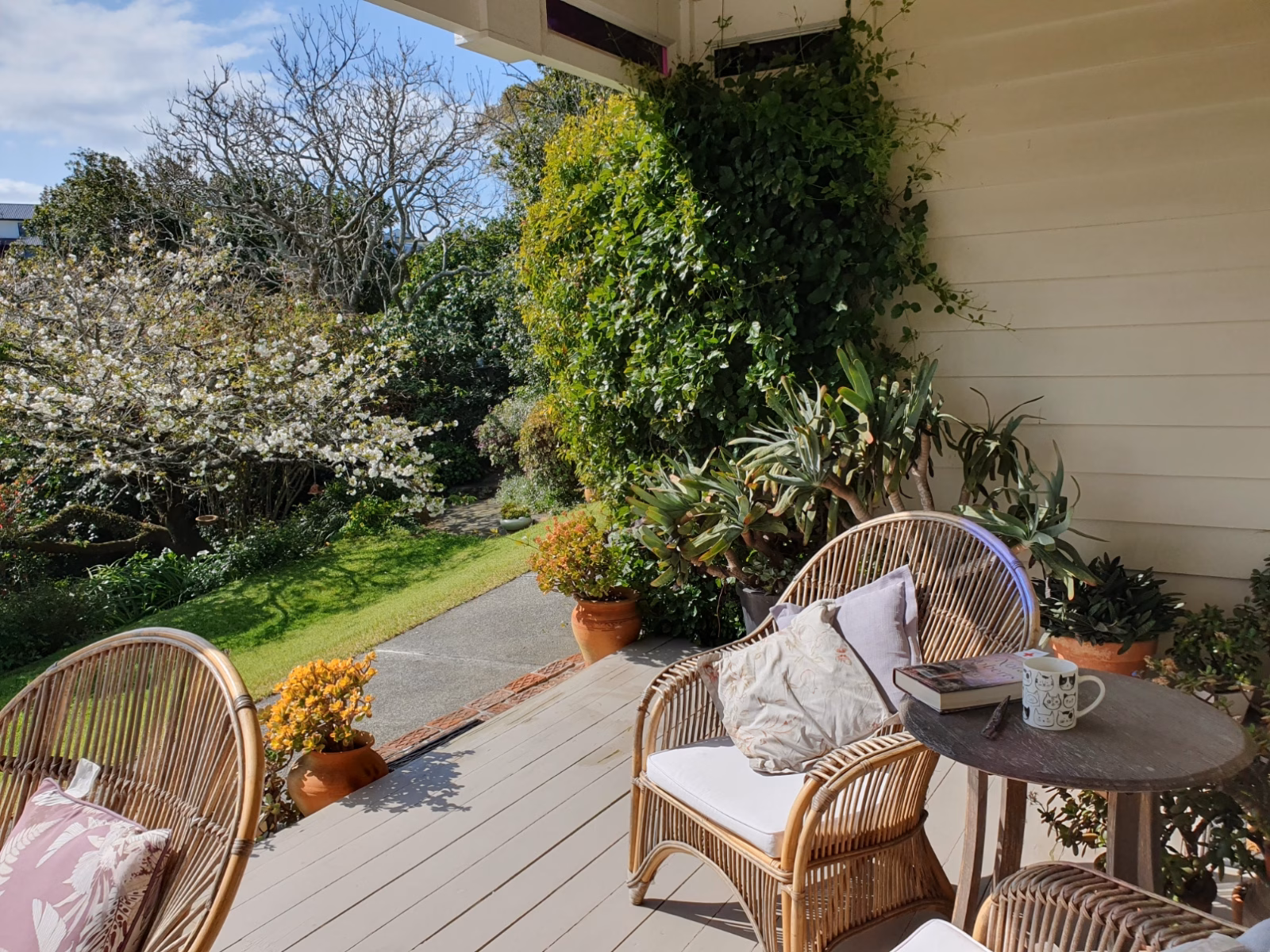 Cobden Garden is a quiet, sunny, colonial villa high on Bluff Hill with extensive views of the sea and the distant hills from the upstairs lounge and bedrooms or alternatively, downstairs, enjoy the privacy of a secluded veranda or the peace of the bedroom and lounge, surrounded by the garden.