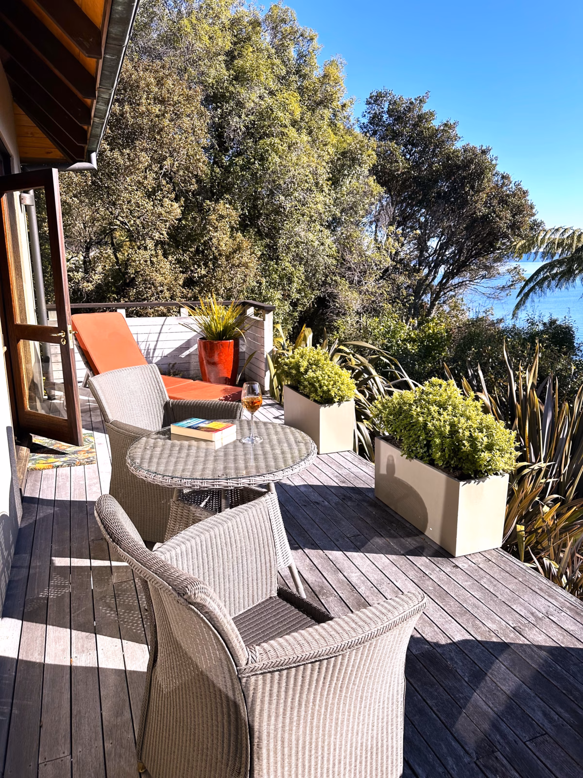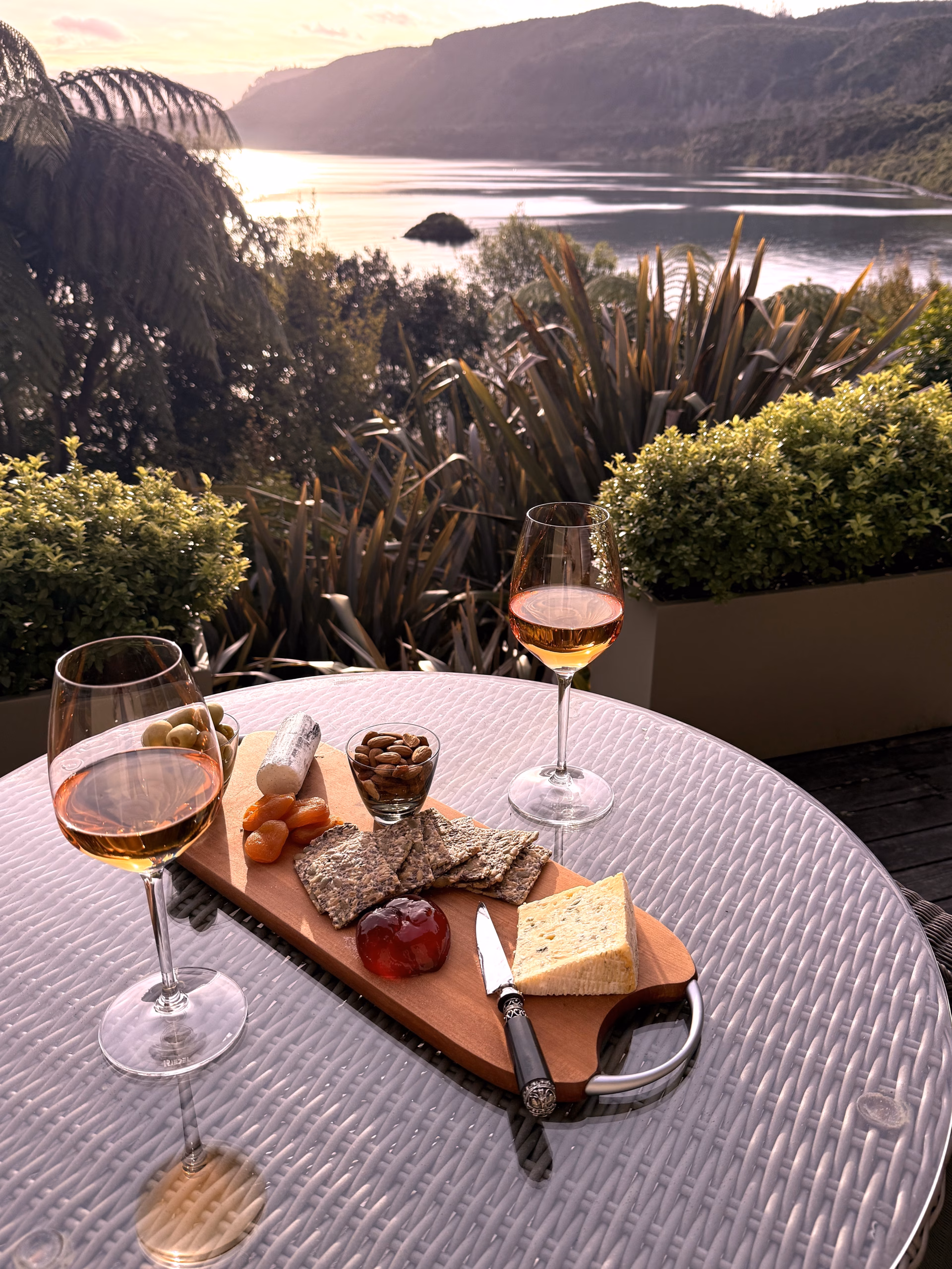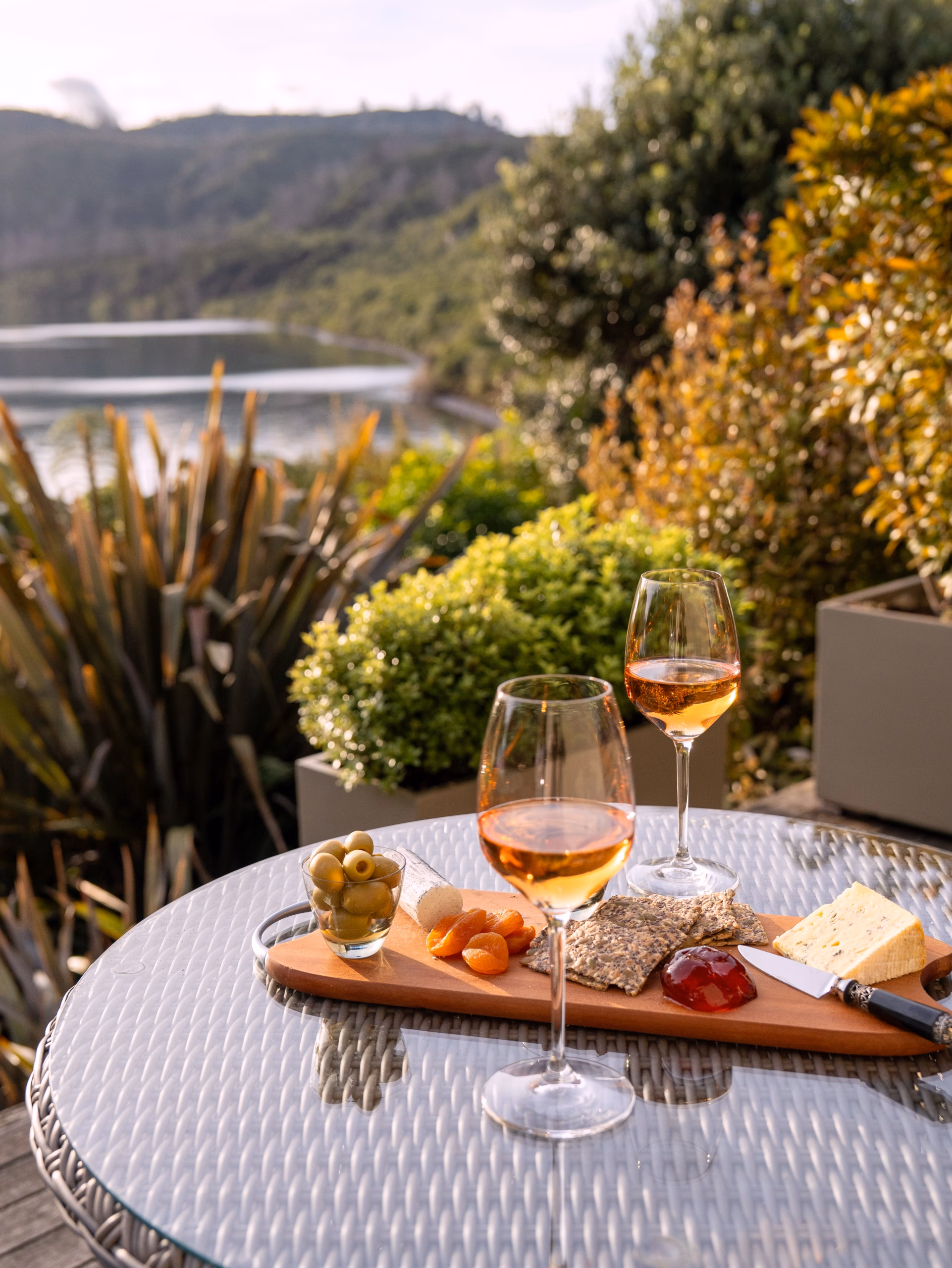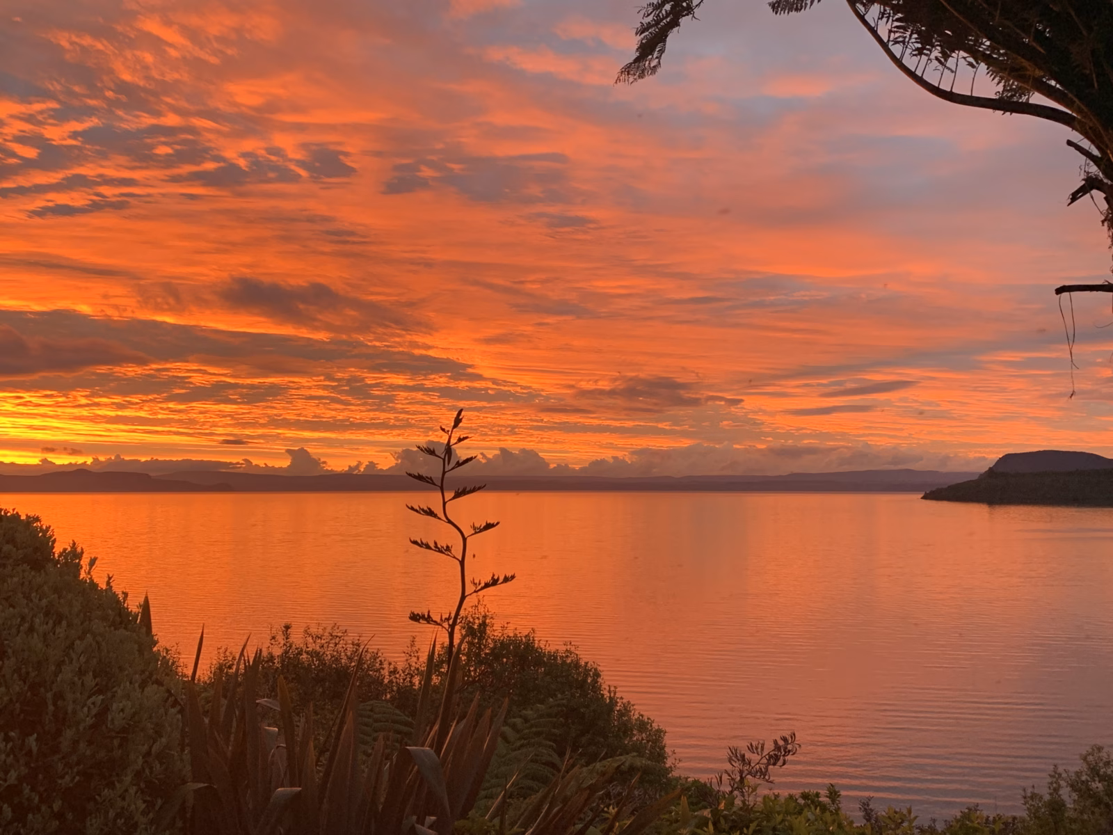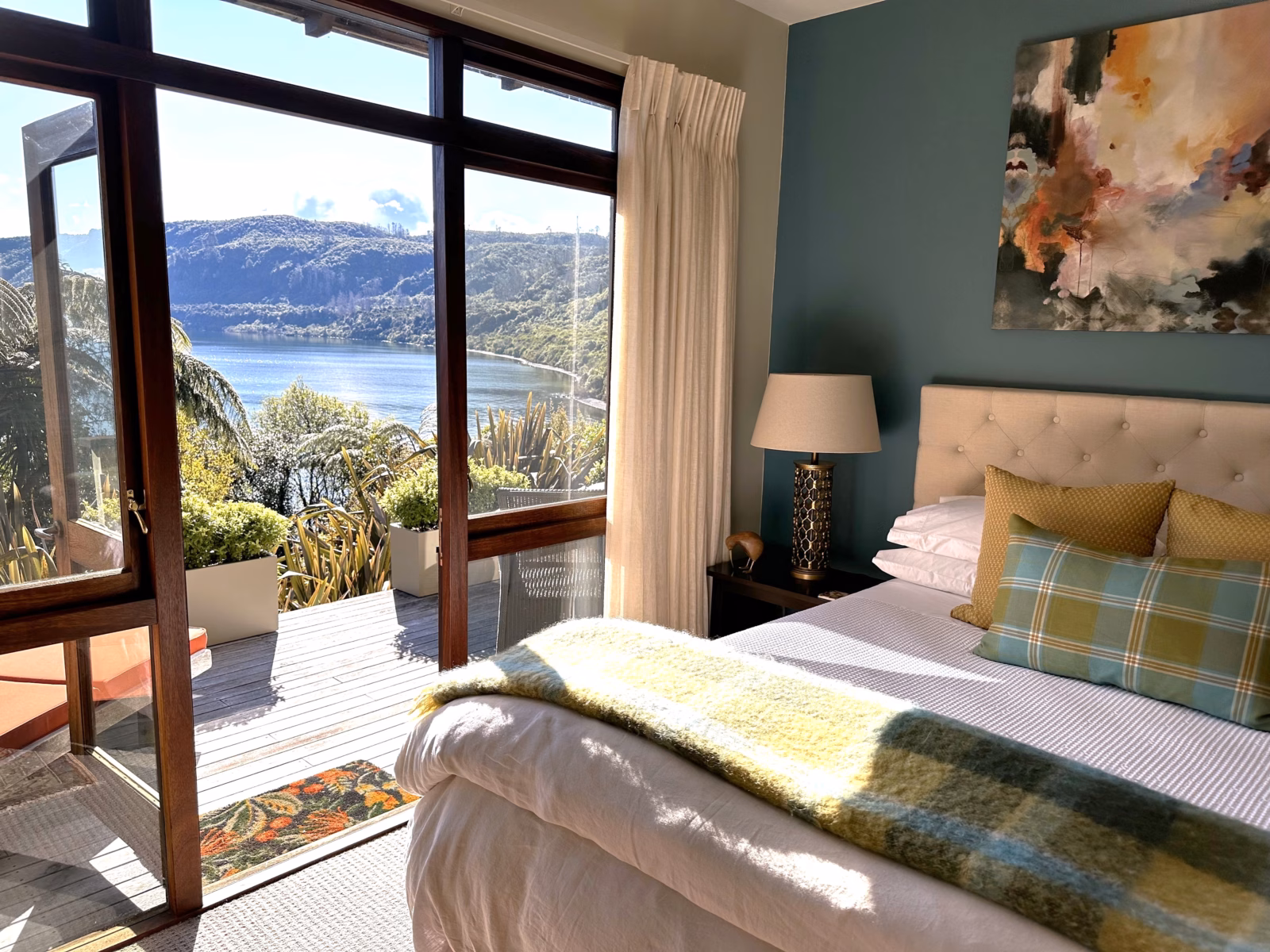 Located a short drive from Taupo township, Okuta Bay Retreat is a private sanctuary nestled in native bush on the lakefront of Okuta Bay (Mine Bay), Lake Taupō. As part of an exclusive private estate, Okuta Bay Retreat sits within 58 acres of exotic and native gardens, alive with birdsong. Just a stone’s throw from the lake edge you can swim in the crystal-clear waters of New Zealand’s largest freshwater lake, view the magnificent Ngātoroirangi Māori Carvings, discover a web of walking trails, play tennis or simply relax on your private balcony while the sun sets over the Western Bays. For those wanting to explore more extensively your hosts will happily share their personal recommendations to ensure you make the most of your time in this beautiful region.
